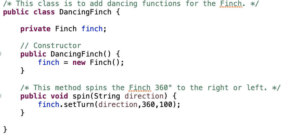 Throughout these lessons, you have been writing classes in Java, but you have primarily just been using main() to call Java functions, Finch methods, or your own methods. This lesson will focus on designing classes in an object-oriented way. A class defines the methods and variables for a programming object. A good object-oriented class will encapsulate a set of variables and methods that logically belong together.
