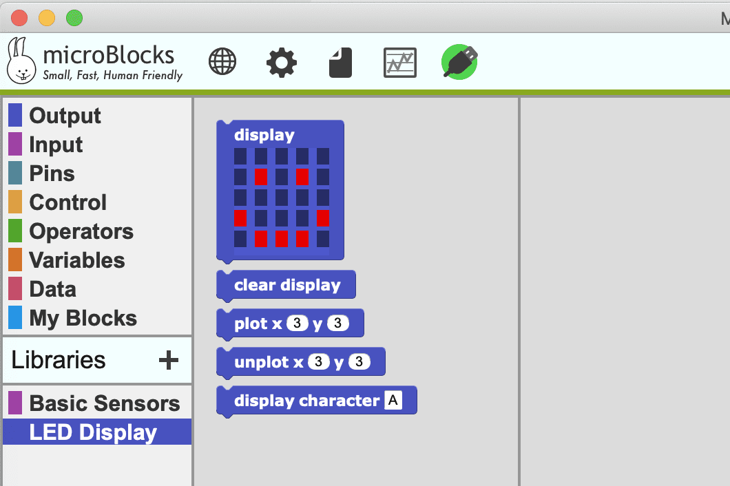 MicroBlocks is a free, Scratch-like programming language specifically designed for microcontrollers. With MicroBlocks, scripts run immediately right on the micro:bit without downloading, which means you can explore blocks and easily test your code. The code continues to run when the micro:bit is disconnected from the computer, making MicroBlocks perfect for programming the Finch Robot!