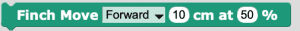 | Moves the Finch forward or back for a given distance at a given speed (0-100%). | ||