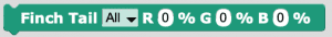 | Sets one or all of the tri-color LEDs in the Finch tail to the color specified by red, green, and blue brightness values. The values range from 0% to 100%. | ||