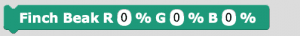 | Sets the tri-color LED in the Finch beak to the color specified by red, green, and blue brightness values. The values range from 0% to 100%. | ||