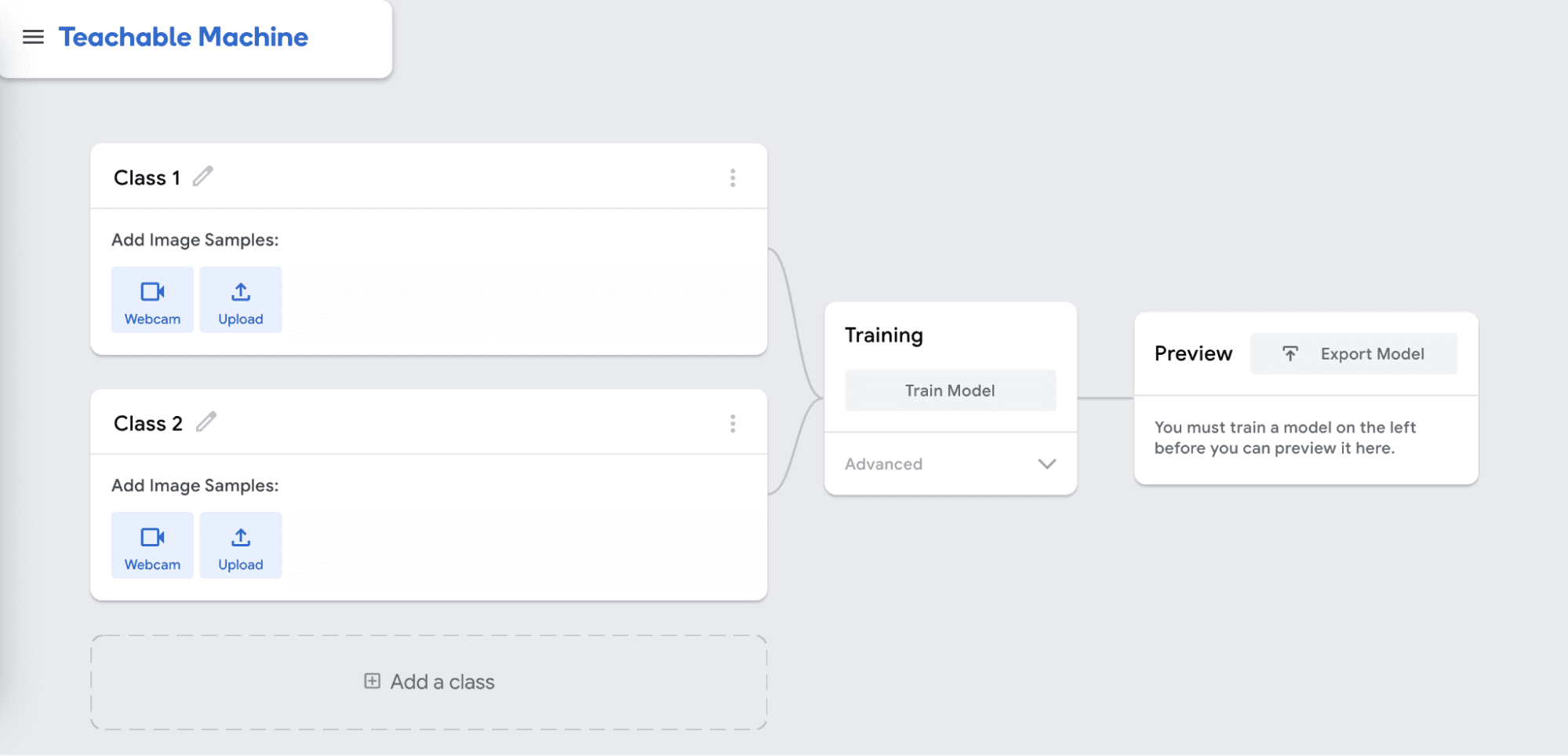 The first step is to open Google Teachable Machine in order to create an image recognition model.