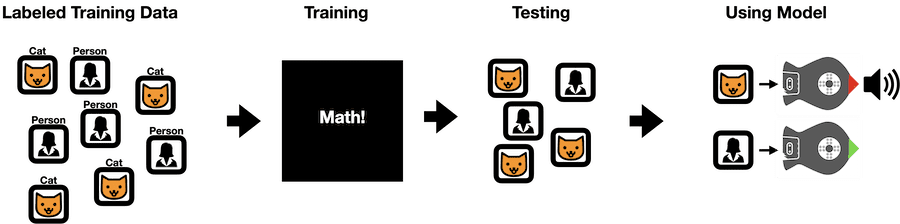 Once you have trained a machine learning model, it is important to test it to see if it behaves as you expect. Can it consistently tell the difference between you and your cat? If not, you may need to train it again with more training data. Real-world machine learning algorithms are trained using an incredible amount of data, though these activities will use small data sets.