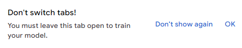 Your browser may pop up a warning that the window is unresponsive – ignore this and allow the machine to keep working. The tab MUST stay open and visible while the model is training.