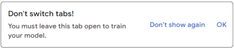Your browser may pop up a warning that the window is unresponsive – ignore this and allow the machine to keep working. The tab MUST stay open and visible while the model is training.
