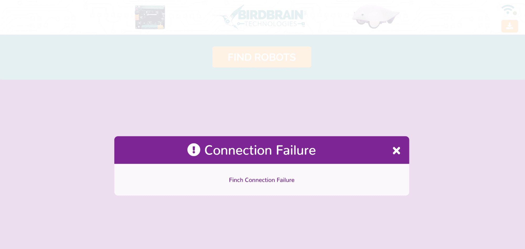 Click Find Robots. Your Finch robot will appear. Click on the name of the robot and then click Connect.