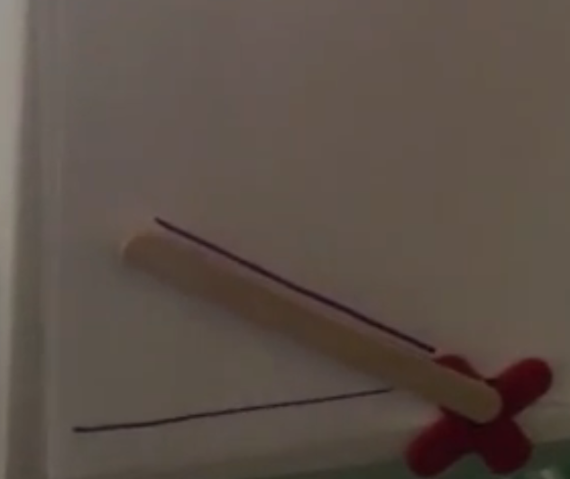 This project uses a servo motor mounted behind a cardboard drawing surface. A popsicle stick is attached to the servo as a drawing guide. The program uses a variable angle that is set to a random number between 0 and 150. The program prompts the user to draw the first ray of the angle at 0°, and the sprite draws the first ray of the angle. The servo motor then moves the drawing guide to an angle and prompts the user to draw the second ray. The sprite draws the second ray at the same time. If statements can be used to classify the angle as acute, right, or obtuse. Because the value of the angle is chosen randomly, a right angle is not very likely.