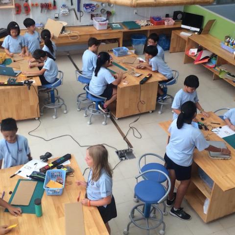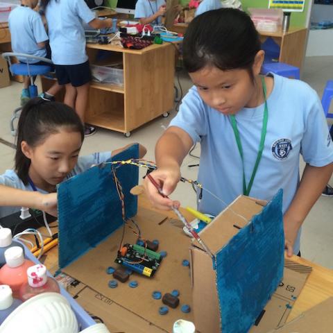 Grade 4 students at Saigon South International School learn about engineering, design, and programming within a fully integrated unit that focuses on coding for a purpose, energy, and service-based learning. Students investigate where energy is wasted in their lives and design prototypes to help them reduce energy waste. This project introduces students to the engineering and design cycle in the context of a service-based project. This unit is really about being innovative and “thinking outside the box” – looking at problems and empowering students to believe that with hard work, they can find solutions. Students learn how computer languages provide an open canvas for creativity that can be combined with robotics to bridge the gap between the physical and the digital world and make the world a better place. This project was created by Alfredo Papaseit (Technology Coach) and Melanie Sylvester (Grade 4 Team Leader), who also presented this project at the 21st Century Learning Conference in Hong Kong.