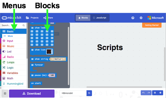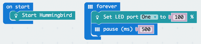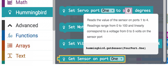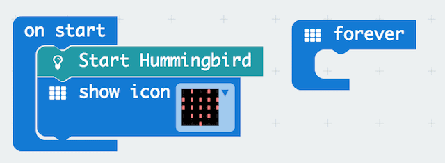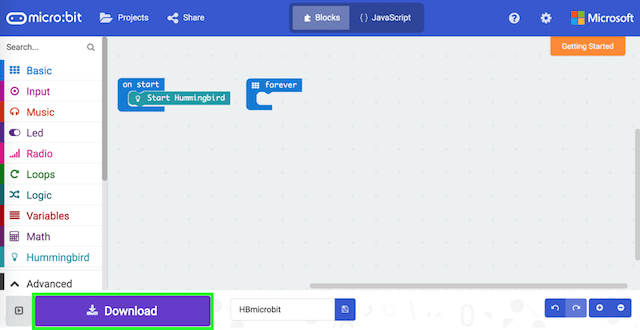 Now you can use the micro:bit to control your Hummingbird! You can write programs in the block-based MakeCode environment and then download them onto the micro:bit. Then you can disconnect the robot from the computer but keep running your program! To use the Hummingbird with micro:bit, you will need a Hummingbird micro:bit adapter. Because it is browser-based, MakeCode is compatible with Windows, Mac, Linux, and Chromebooks.