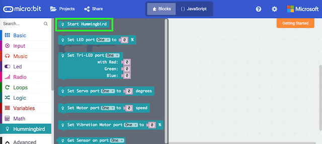**You must have a micro:bit and micro:bit adapter to use your Hummingbird Duo with MakeCode. Purchase it here.**