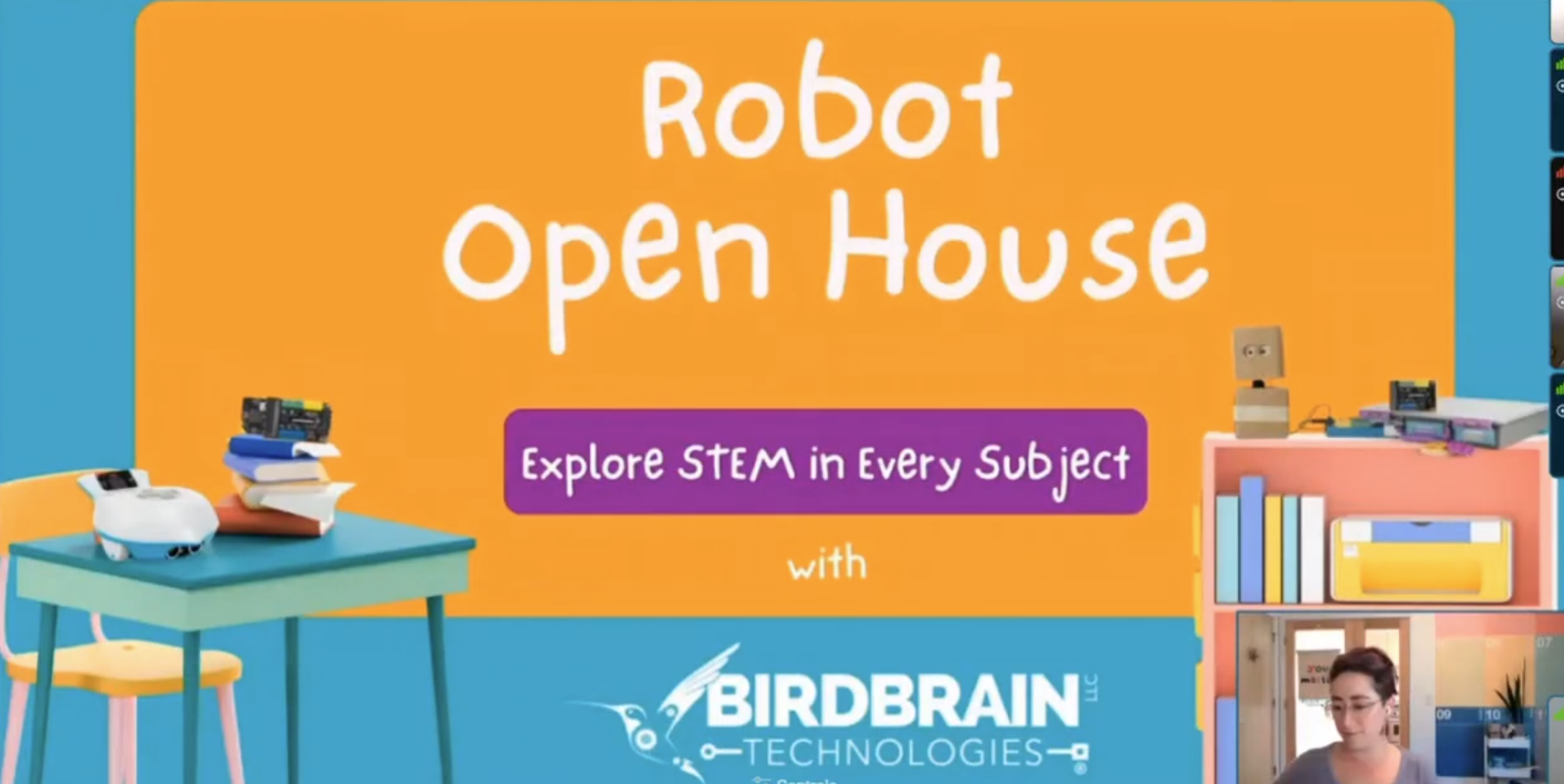 Robot Open House – Exploring STEM in Every Subject, a Wednesday Webinar with IDEA Join the BirdBrain Technologies Team and the Illinois Digital Educators Alliance for a Robot Open House as we venture through the full school day, exploring robotics and coding in every subject. | Watch |