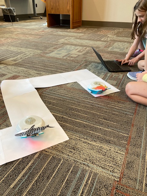 Each Monday, librarians Ellen Dupree (NYSSD) and Megan Gillander (OPL) set up a Zoom call so their students can practice basic ASL. Then, students work on a coding challenge at their own sites using Finch Robots on loan for the summer to NYSSD through BirdBrain Technologies!