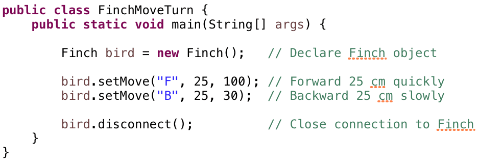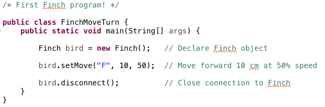 The Finch is a robot designed specifically for students learning computer science. You can write programs to move and turn the Finch, light up its beak, and collect information with its sensors. As you write programs, you will be able to test your programs with the Finch in the real world!