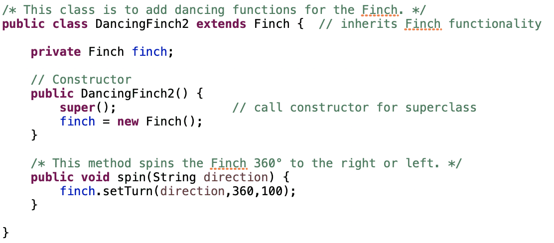 Throughout these lessons, you have been writing classes in Java, but you have primarily just been using main() to call Java functions, Finch methods, or your own methods. This lesson will focus on designing classes in an object-oriented way. A class defines the methods and variables for a programming object. A good object-oriented class will encapsulate a set of variables and methods that logically belong together.