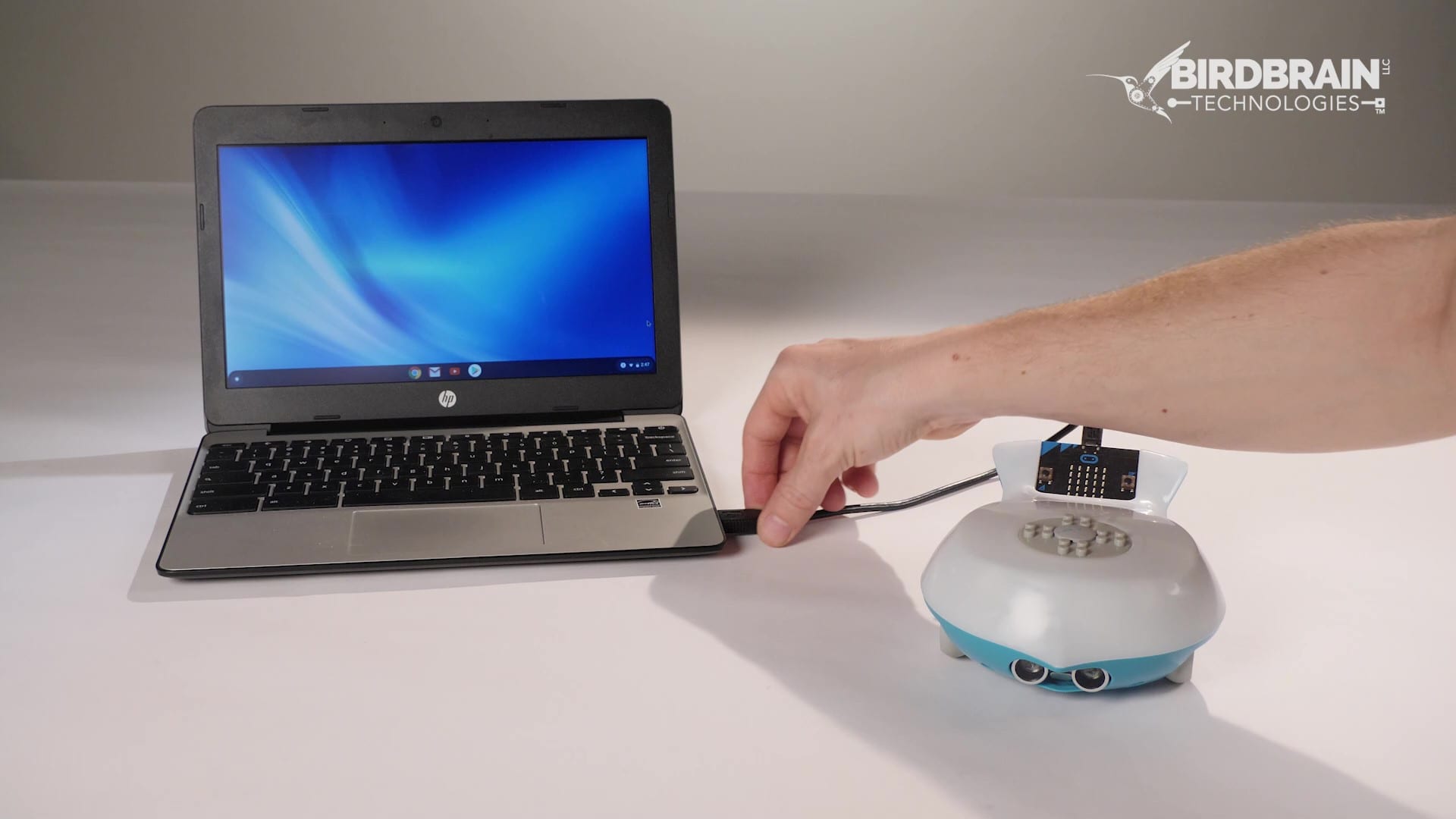 Insert a micro:bit into the Finch and connect the micro:bit to the computer with the USB cable.