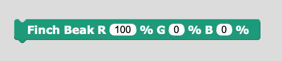 | Sets the tri-color LED in the Finch beak to the color specified by red, green, and blue brightness values. The values range from 0% to 100%. | ||