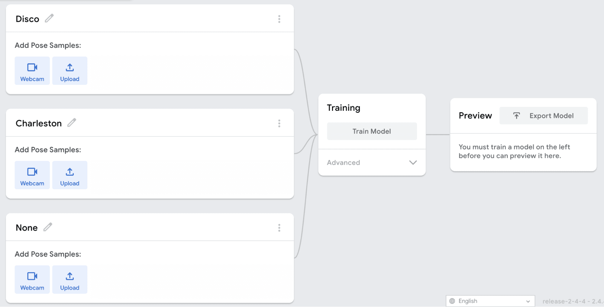 The first step is to open Google Teachable Machine in order to create a pose recognition model.