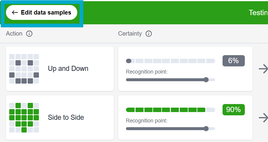 3. Recognition Point: You can adjust the recognition point to remove false positives. We recommend setting the recognition point to 90% or above for all gestures except “at rest”.