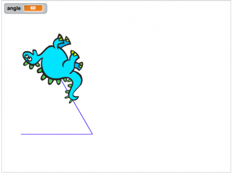 This project uses a servo motor mounted behind a cardboard drawing surface. A popsicle stick is attached to the servo as a drawing guide. The program uses a variable angle that is set to a random number between 0 and 150. The program prompts the user to draw the first ray of the angle at 0°, and the sprite draws the first ray of the angle. The servo motor then moves the drawing guide to an angle and prompts the user to draw the second ray. The sprite draws the second ray at the same time. If statements can be used to classify the angle as acute, right, or obtuse. Because the value of the angle is chosen randomly, a right angle is not very likely.
