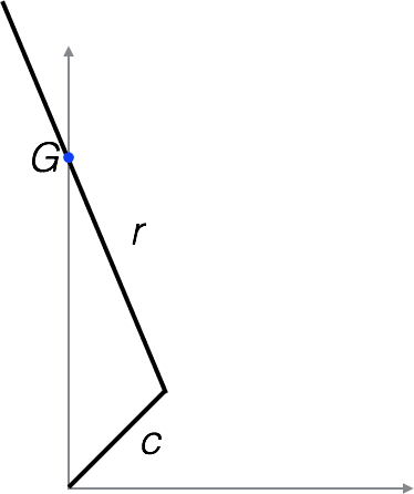 - Draw the crank and guide when the rod is at its lowest point. What are the coordinates of the top of the rod in terms of c and r?