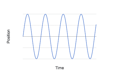 Think about starting a timer when you turn on the motor. As the seconds pass, the crank rotates and the piston moves up and down. We could make a graph with time on the x-axis and the position of the piston on the y-axis. This graph would look something like the curve shown below.