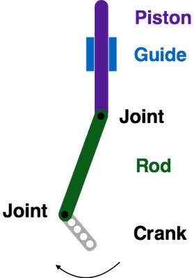 - Crank and Slider Mechanism: This website animates the movement of a crank and piston mechanism and describes its parts.