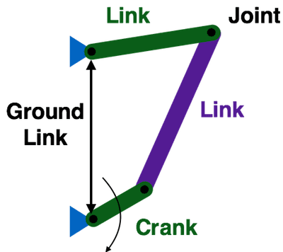 - One of the moving links is a crank that is rotated by a motor.